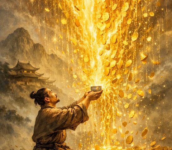 Yang tidak disadari oleh pria ini adalah: Di alam semesta yang tinggi, para Shen Xian sebenarnya sudah siap menuangkan “hujan emas” tersebut. Namun, saat mereka melihat ke bawah, mereka merasa bingung. Mengapa? Karena pria tersebut hanya memegang sebuah cangkir teh kecil.